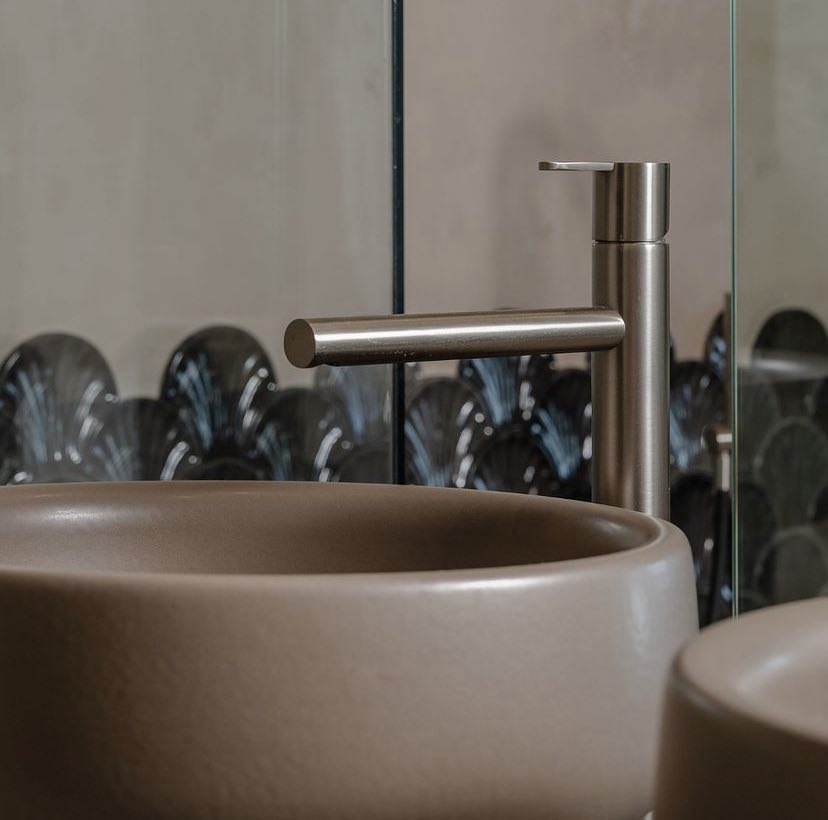 Lusa строится на геометрии плоской дуги и прямого излива - форм, которые легко читаются в пространстве и не конкурируют с отделкой. Ручка лаконична: один рычаг, плавное движение, никакой визуальной нагрузки. Это тот редкий случай, когда смеситель становится акцентом через отсутствие лишнего, а не через декор. Силуэт одинаково органично работает в минималистичных ванных с наливными раковинами, в отелях категории boutique и в классических интерьерах с итальянской сантехникой. Геометрия универсальна - настроение задаёт финиш.